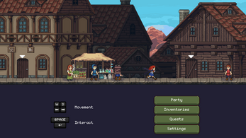 Sideview state: WASD or arrow keys, W or Up key will interact with a character. Interact with with the character on the far right side to begin the battle.